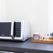 La cucina abitabile è arredata con un tavolino da colazione per 2 persone. I pensili sono realizzati su misura e contengono la lavastoviglie, il frigorifero e la lavatrice. Per cucinare si hanno a disposizione due piastre ad induzione ed il forno a microonde/grill.