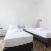 La zona notte si compone di due stanze, di cui una dotata di letto matrimoniale (160 x 200 cm), un TV da 32", stand appendiabiti e comodino; la seconda stanza è arredata con due letti singoli (80 x 200 cm) eventualmente unibili a formare un comodo letto matrimoniale, nonché un armadio grande a due ante.