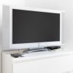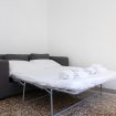 La zona giorno mette a disposizione anche un terzo salotto, più intimo e dominato dal colore bianco dove, a fianco di un'utile cassettiera, si trova un divano letto matrimoniale (140 x 200 cm) in tessuto grigio scuro e un appendiabiti di design.