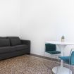 La seconda sala è dedicata al relax. Sulla console laccata nera il sistema multimediale si compone di un TV da 50", con possibilità di visione 3D (tramite occhiali in dotazione), ed una simpatica cassa Bluetooth per ascoltare la propria musica. Oltre che di un comodo divano letto da una piazza e mezzo (120 x 200 cm), il salotto è dotato di un ulteriore divano da due persone e di un tavolo in cristallo da 6 persone, completo di eleganti sedute.