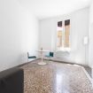 I pavimenti sono quelli originali realizzati in laminato veneziano, una finitura tipica degli antichi palazzi nobiliari del centro storico di Bologna, ed in ogni stanza è presente l'aria condizionata. L'atmosfera ricorda quella di uno studio fotografico newyorkese, con il bianco dei muri che diventa lo sfondo che mette in evidenza gli esclusivi arredi dal design by Gavina. Le ampie finestre, che rendono piacevolmente luminoso l'ambiente, si affacciano sul panorama tipicamente medievale del centro storico.