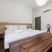 L'appartamento è stato completamente rinnovato nel marzo del 2022; una serie di mobili originali degli anni ’70 sono stati ristrutturati e ammodernati per poi essere affiancati ad elementi più moderni e colorati. Per i pavimenti è stato scelto di mantenere i marmi originali, che ben si sposano con il color salvia degli arredi e che permettono di mettere in risalto il verde più scuro di porte ed infissi. In questo modo si è creato uno stile estremamente trendy dal marcato gusto vintage capace, non solo di assicurare agli ospiti un soggiorno piacevole in un contesto raffinato, ma anche di viziarli con tutti i più moderni comfort. Il riscaldamento è centralizzato per tutto il palazzo; l’aria condizionata è presente nel salotto e nelle 2 camere da letto, mentre nello studio è presente un ventilatore.