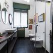 I bagni sono pieni di carattere, grazie agli specchi antichi che ne tappezzano le pareti ed ai mensoloni di legno a vivo realizzati su misura dove sono appoggiati i lavabi. In un bagno è presente un’ampia cabina doccia in cristallo, mentre nel secondo gli ospiti hanno a disposizione una vasca da bagno (con doccetta).