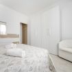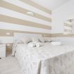 Tramite un corridoio si accede alla camera da letto padronale, dove trova posto un letto matrimoniale (160 x 200 cm), l’ampio armadio guardaroba, una poltrona e la cassettiera completa di specchio. Il bagno è spazioso e ottimamente rifinito; è dotato di una grande cabina doccia realizzata in opera e si caratterizza per il piano in legno grezzo, su cui è stato installato il lavandino in ceramica.