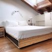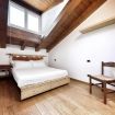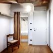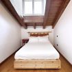 Per accedere alla zona notte si sale al piano superiore, dove si hanno a disposizione due camere da letto intime ed accoglienti, grazie ai soffitti completamente ricoperti di legno ed ai rivestimenti in parquet. L’ampia camera padronale è dotata di un comodo letto matrimoniale (160 x 200 cm), capienti armadiature realizzate su misura e di una lunga cassettiera. Gli ospiti hanno a disposizione una seconda camera, dotata di un letto matrimoniale alla francese (140 x 200 cm) e di una cabina armadio perfettamente organizzata, che può essere nascosta grazie ad una gradevole tendona colorata.