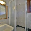 Infine, il bagno, che si trova di fronte alla zona del letto, è moderno e funzionale ed è dotato di una cabina doccia in cristallo.