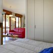 La zona notte contiene un comodo letto matrimoniale davanti al quale è stata posizionata una seconda TV. La cabina armadio è molto ampia e si estende per tutta la parete a fianco al letto.