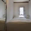 Dal soggiorno una scala a chiocciola porta alla camera da letto del piano superiore, che è intima ed accogliente. Davanti al comodo letto matrimoniale è posizionata una capiente cassettiera mentre un'altra scala porta ad un soppalco, attrezzato con un porta-abiti dove sistemare i vestiti.