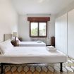 Per accedere alla zona notte si percorre un corridoio che termina nella grande camera da letto padronale. Affacciata sul verde, questa stanza è dotata di un comodo letto matrimoniale (160 x 200 cm), che può essere diviso su richiesta in due singoli (80 x 200 cm), e di una capiente cabina armadio. La seconda camera mette a disposizione due letti singoli (80 x 200 cm), che possono essere eventualmente uniti a formare un matrimoniale (160 x 200 cm). Completano l’arredo un’altra grande cabina armadio ed una confortevole postazione per lo smart-working, dotata della sua poltrona.