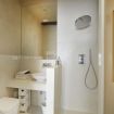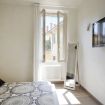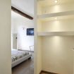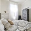 La struttura dell’appartamento è comoda e razionale, e zona notte è separata dal salotto da un corridoio che porta alle due stanze da letto ed ai bagni. Le camere da letto si affacciano sulla corte interna del palazzo storico in cui è situato l’appartamento, e sono quindi molto silenziose. La camera padronale è arredata con un comodo letto matrimoniale (160 x 200 cm), è dotata di un guardaroba a due ante, di una TV a schermo piatto a parete e permette l’accesso al raffinato bagno en-suite, dotato di una cabina doccia. Vi è poi una seconda camera, dotata di un letto da una piazza e mezzo (140 x 200 cm), di un armadio a due ante e una comoda scrivania per lo smart working.