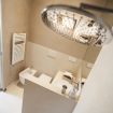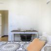 L’appartamento si apre su un accogliente soggiorno dove le calde nuance scelte per i rivestimenti, il raffinato mobilio realizzato su misura ed i quadri colorati appesi alle pareti creano un’atmosfera moderna e rilassante, ideale per rilassarsi dopo una giornata di lavoro o di esplorazione della città. L'arredo comprende un elegante divano da 3 persone, un piccolo pouf bianco in tessuto ed un tavolo in vetro, completo di eleganti sedute per 4 persone e sovrastato da un’iconica lampada ad arco di design.