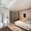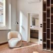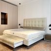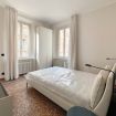 La struttura dell’appartamento è comoda e razionale, entrambe le grandi camere sono accessibili dal salotto e sono dotate di lussuosi bagni privati, rivestiti in micro-cemento. La lussuosa camera padronale è arredata con un letto matrimoniale king size (200 x 200 cm), è dotata di un’ampia cabina armadio, di una libreria realizzata su misura, di una poltroncina e di una pratica scrivania, affacciata sulle pittoresche case bolognesi che si susseguono in via Santo Stefano. Vi è poi una seconda camera, molto luminosa grazie al doppio affaccio, dotata di un letto matrimoniale (160 x 200 cm) e di un armadio a due ante.