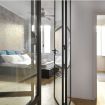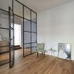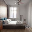 L’accesso alla spaziosa camera da letto padronale è molto coreografico: si tratta di una vetrata realizzata a mano e decorata in ferro battuto che dona un tocco vintage all'atmosfera dell’immobile, dove il design moderno si sposa deliziosamente con particolari dal gusto più classico. La camera padronale è arredata con un comodo letto matrimoniale (160 x 200 cm), una credenza ed una cassettiera.