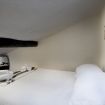 La seconda camera da letto si trova proprio di fianco alla porta di accesso dell’immobile; è arredata con una cassettiera e un letto matrimoniale (160 x 200 cm). Trattandosi di una mansarda, il soffitto spiovente impedisce di sfruttare in altezza tutta la stanza.